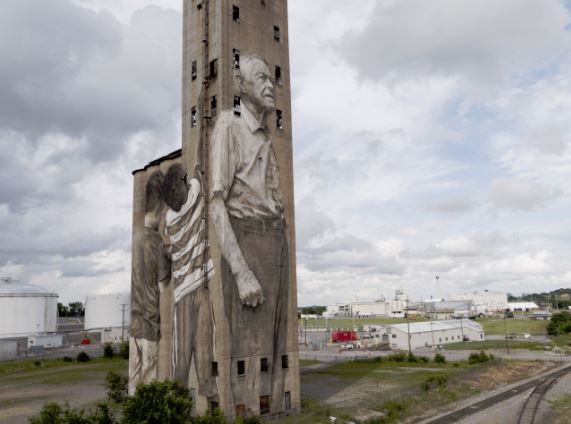 Australian street artist Guido van Helten has converted an old brick grain silo into a piece of art depicting The Nations neighborhood. As he researched the project, he visited St. Luke’s Community House and found his inspiration for the mural within their walls. Lee Estes, a 91 year-old native Nashvillian has lived his entire life in The Nations. A lifelong friend and client of St. Luke’s, Mr. Estes has spent much of his life volunteering at the agency, helping to enrich the lives of children and families.